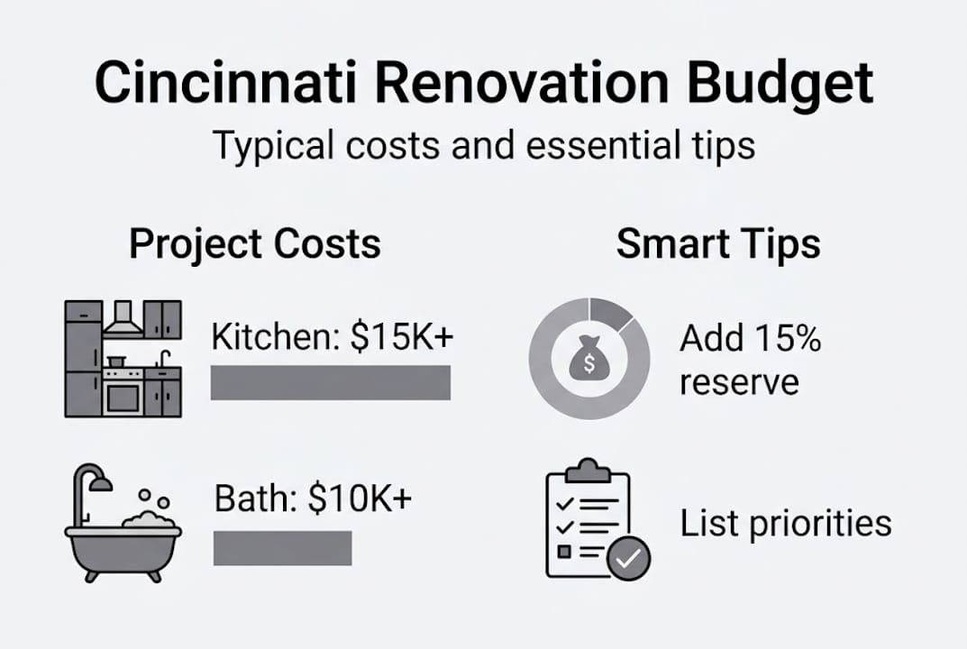 Always add a 15 to 20 percent contingency to your budget. Surprises happen, especially in older Cincinnati homes where you might find outdated wiring, plumbing that doesn't meet current code, or hidden moisture damage once walls come down.